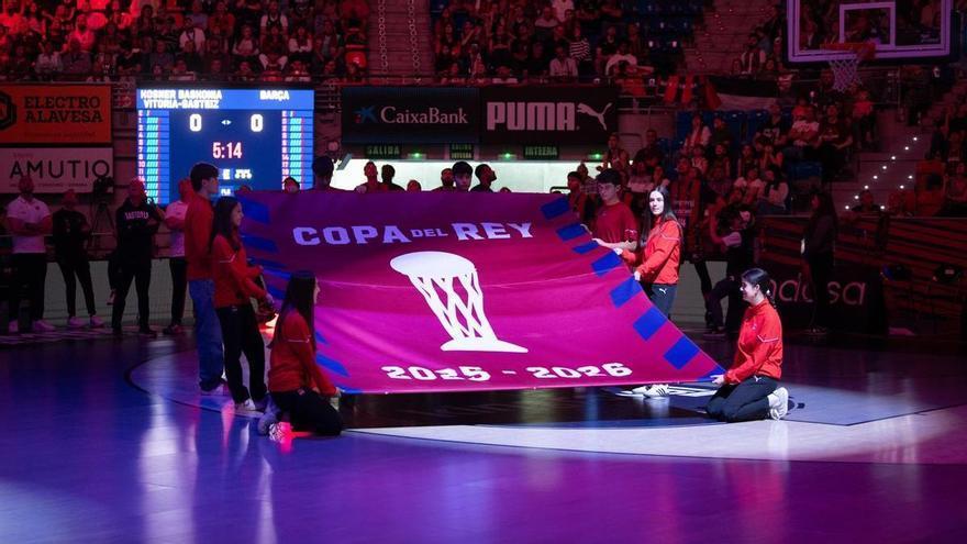 Partidaren aurreko egonaldian, Buesa Arenaren erdian Kopa irabazitako irudi onenak ikustarazteko bideo emozionantea igorri zen, eta irabazleen irrintzi ikusgarria entzun zen, jokalari guztiak arrakasta handi baten irudiak ikusiz zeudela. Berehala, boluntario talde batek irabazi zutenari adierazteko bandera jarria zuen (2025-2026).